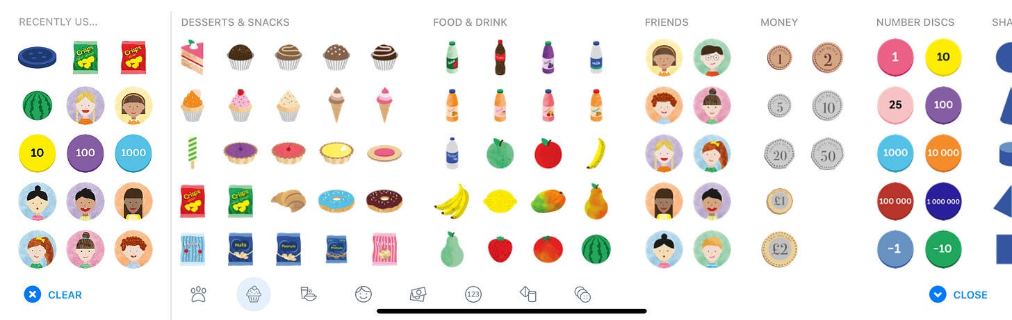 One of the key features of Maths No Problem Visualiser is the ability to model Maths concepts with ease. With its collection of visual aids, including dienes, number discs, place value charts, bar modelling, part-whole model, ten frame, clock, and more, I can easily model complex mathematical concepts to my students. This tool helps me to provide a visual representation of abstract mathematical ideas, making it easier for students to understand. The visualiser provides a blank canvas for you to bring your lessons to life. Here are just a few examples of how I've been using these tools to engage my students and support their learning: