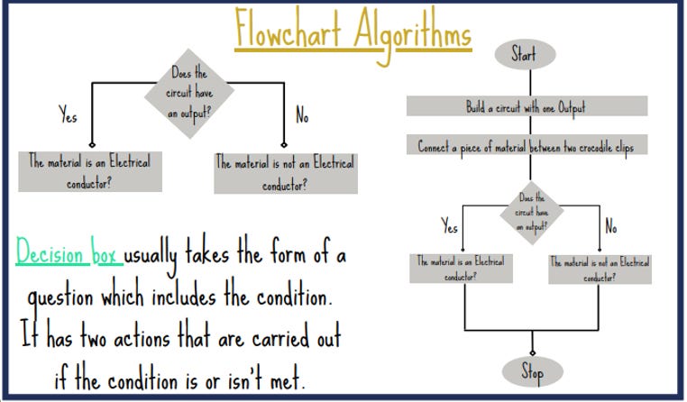 To help students understand algorithms, we worked through several examples of simple algorithms and created flowcharts to represent them. We then moved on to more complex algorithms, including those involving loops and decision-making.